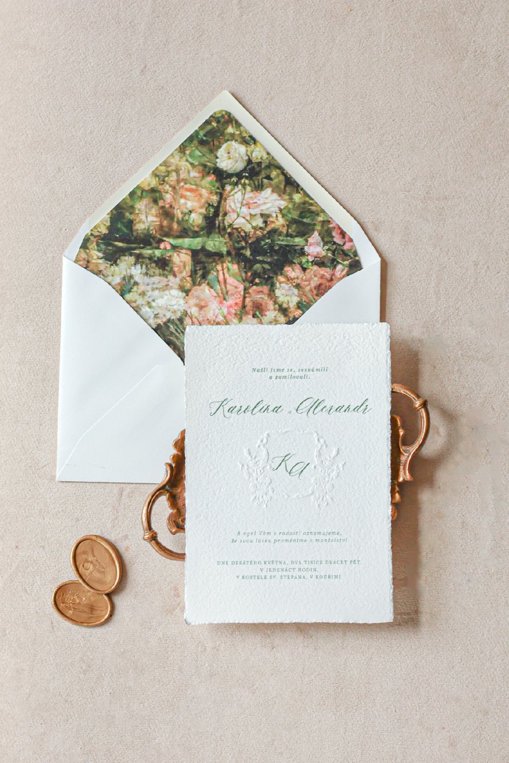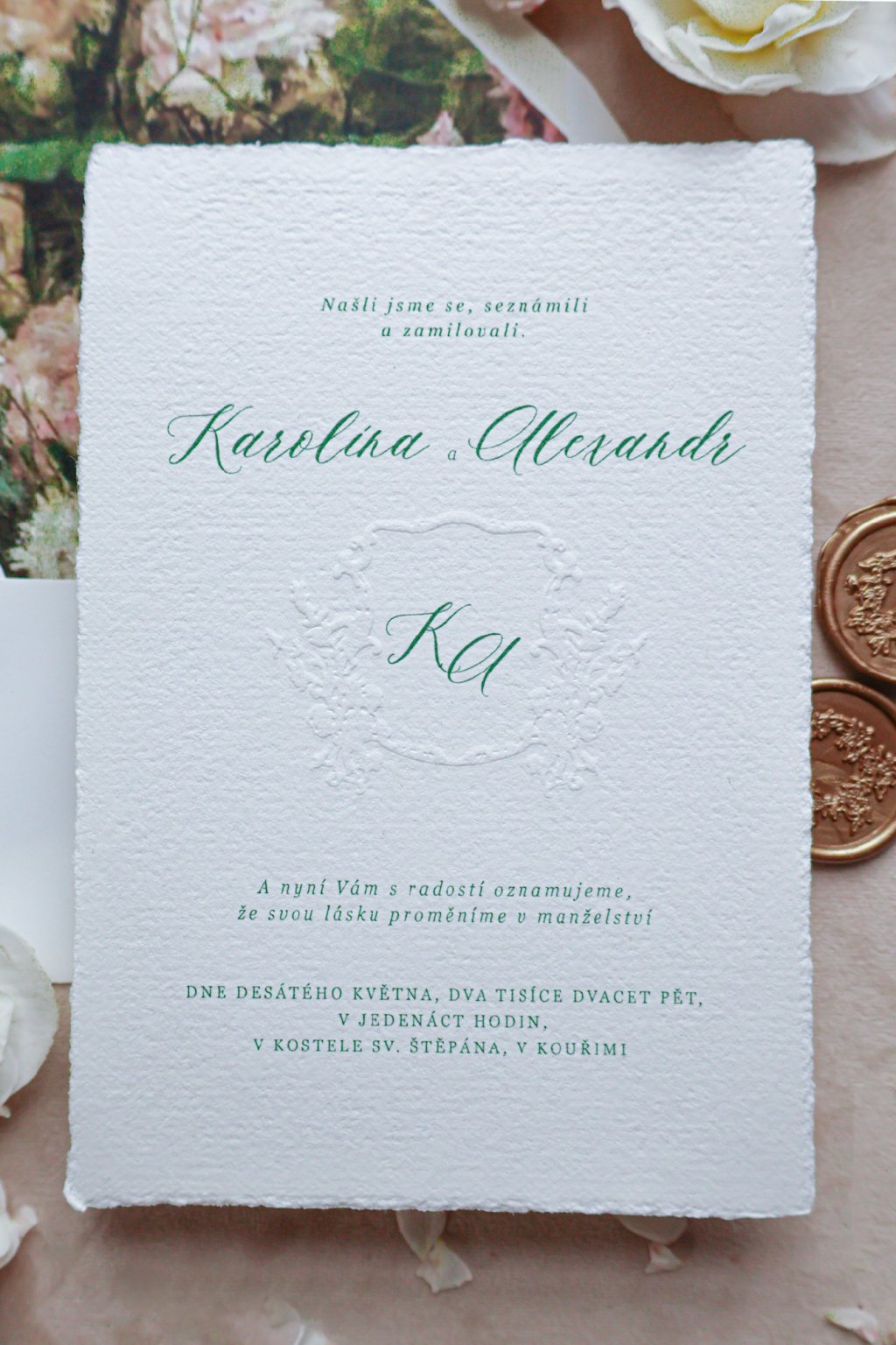 Svatební oznámení s reliéfním erbem – něžný detail, který vypráví váš příběh. Pro lásku, která si zaslouží být vyražena do paměti.