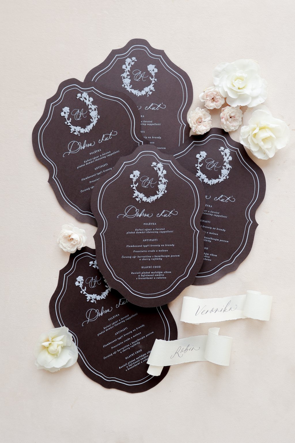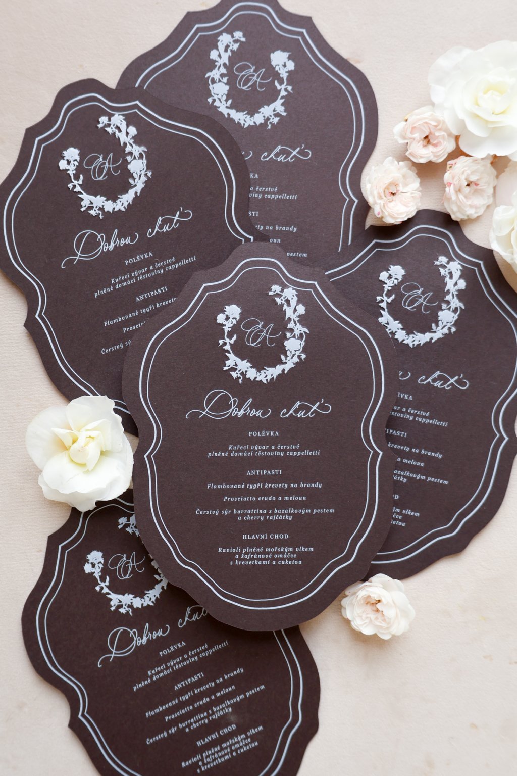 Toto svatební menu spojuje decentní eleganci a luxusní zpracování.